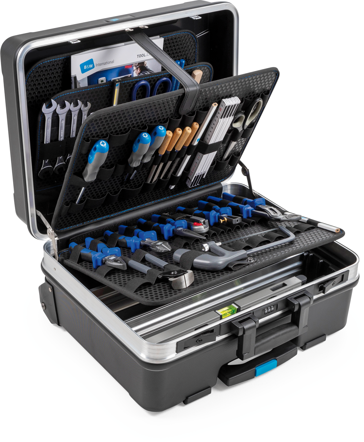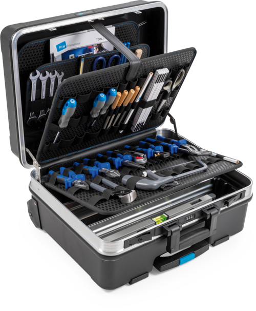 The perfect travel companion: A practical telescoping handle and smooth-running inline casters allow you to take all of your tools with you and use them anywhere. The ergonomic handle provides convenient carrying comfort for shorter trips. The tool.case go has a safety lid holder and a hinge cover that guarantees easy access to tools.