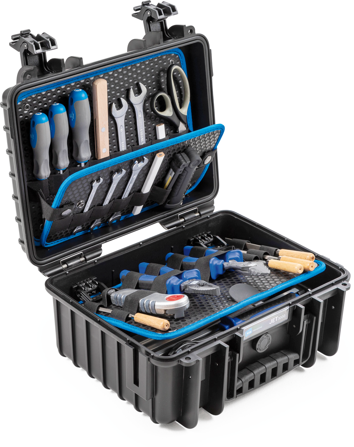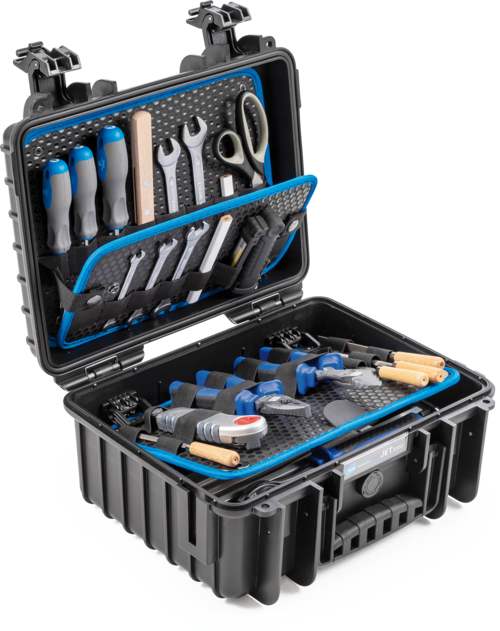 The JET 3000's extremely resilient shell keeps all dust and splash water away from the tools inside. The even surface of this tool.case also makes it stackable, so it is particularly easy to store.