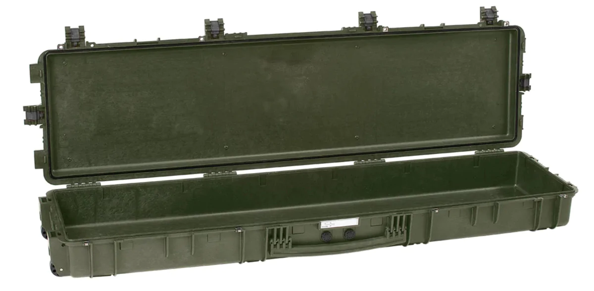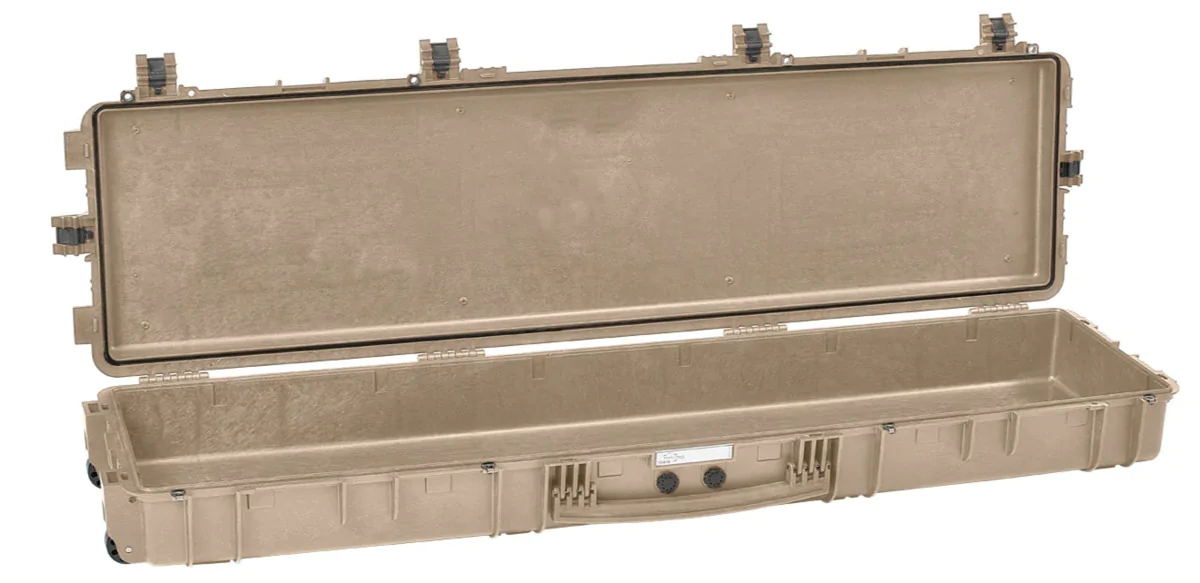 The longest rifle cases on the market. Suitable to accommodate the most used long-range rifles and accessories. Wider latches with safe button. Double automatic purge valves. Self-oiling free running wheels.