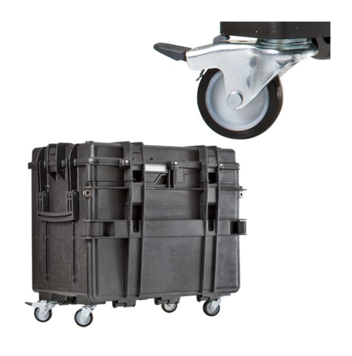 Set of four 360° pivoting wheels, two with breaks. Designed to fit the Explorer 5140 Case.