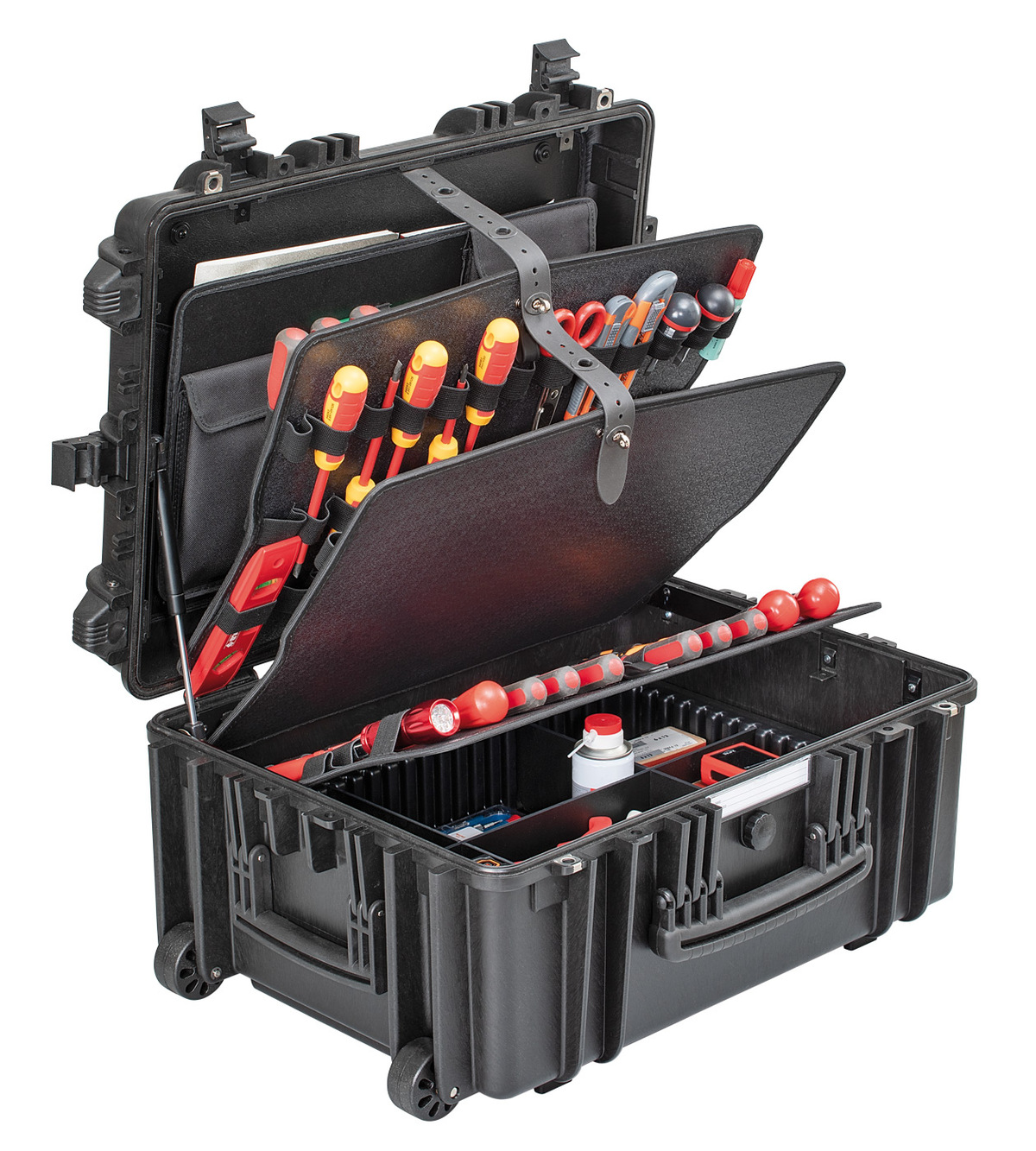 Watertight and perfectly sealed thanks to the exclusive neoprene “O” ring and to the purge valve, these cases grant an absolute protection to your tools. Made of resistant lightweight resin, they are provided with strong locks and a useful and ergonomic handle. They are ideal for use in the harshest environment, such as industrial, aeronautical, military and nautical fields.