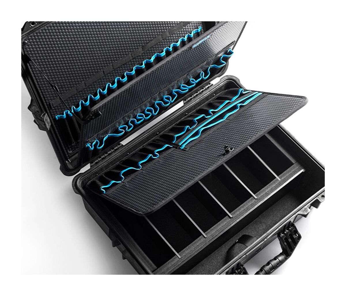 GUARDIQUE Peli 1510T is our own produced tool case based on a standard Peli Case 1510. In our Peli 1510T, we have fitted professional tool inserts, consisting of 2 single and 1 double tool inserts (all removable). Furthermore, there are strong adjustable dividers in the bottom, which can all be removed if you want one large compartment.