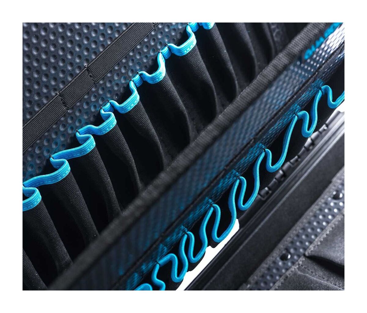 With a capacity of up to 40 kilos, the tool case can sometimes become heavy to carry around. Here, the built-in wheels are ideal for ensuring you can always transport your equipment without hassle.