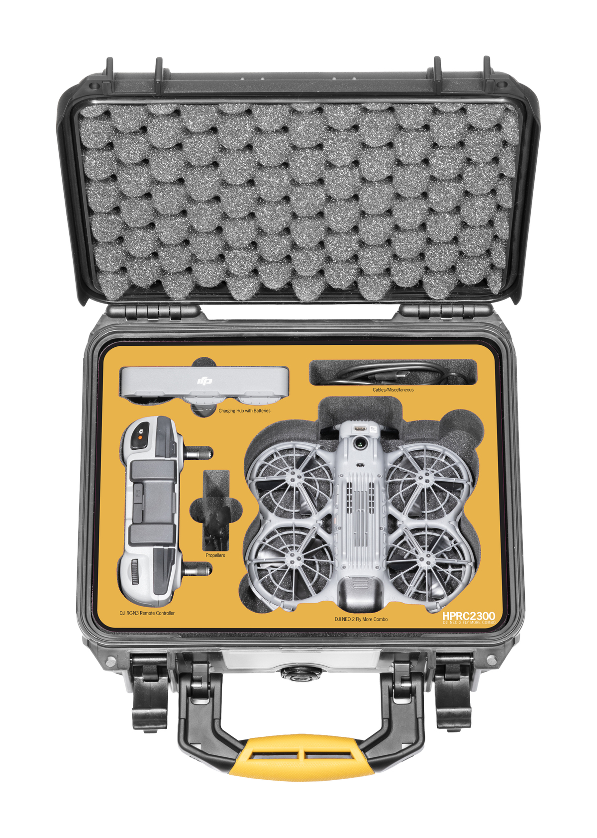Lightweight, easy to handle, and compact in size, the HPRC2300 case is even approved for air travel. It is custom-designed to fit the DJI Neo 2 Fly More Combo and all its components, with eco-friendly Arplank 30 foam providing protection.