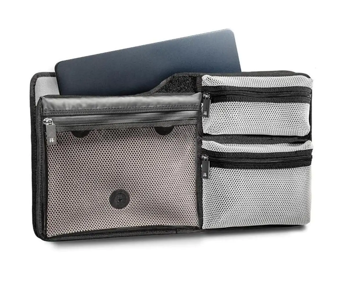 Small items, cables, personal effects will find space inside the two pockets made of double-layer mesh with a diagonal weave that allows the passage of air, while retarding any water accidentally dropped when the case is open. The two layers are different, one more rigid the other more elastic for greater strength.