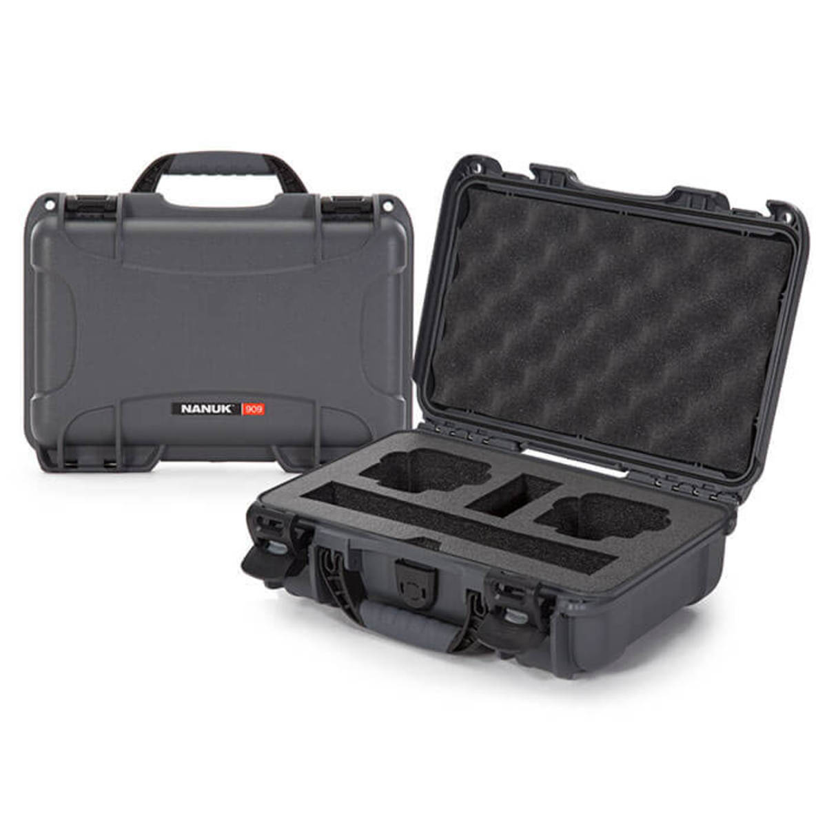 The NANUK 909 for DJI™ Osmo Action Case is designed to offer compartmentalized protection for the DJI™ Osmo Action camera and its accessories.The interior of the case contains a foam-lined lid, and is comprised of pre-cut foam that will securely hold 2 Osmo Action cameras with protective housing and mounting screw. Additional compartments are available for storing important accessories such as multiple batteries, USB cables, a charging hub and more.