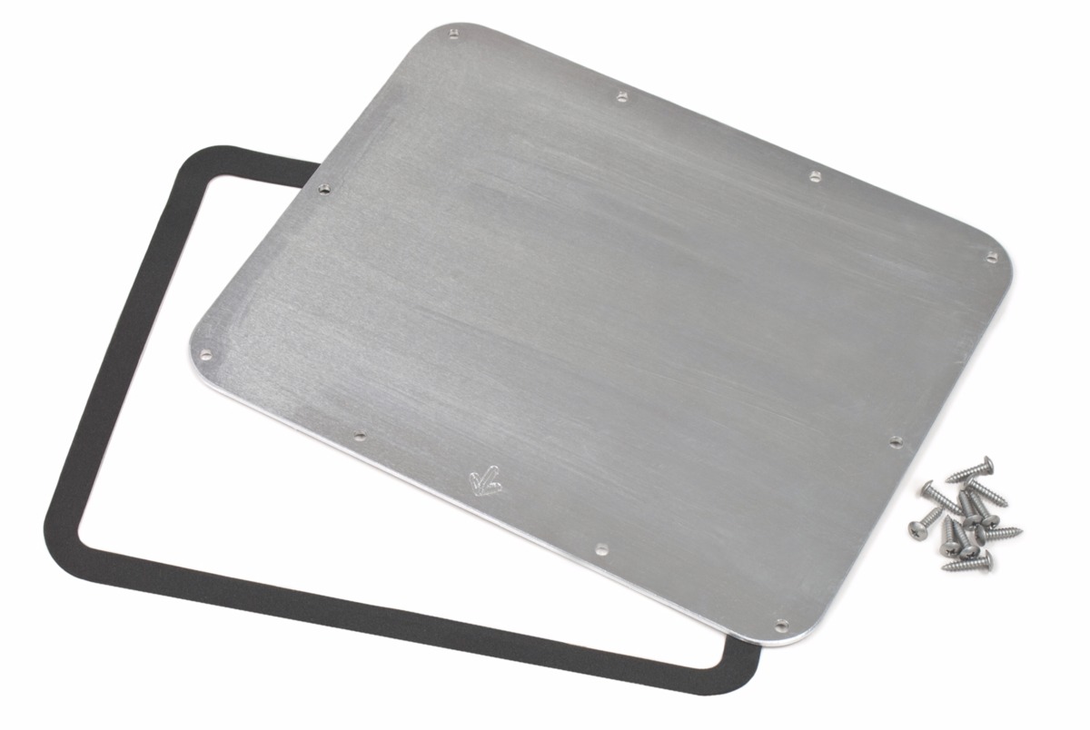 Included in our aluminum panel kit is a contoured 1/8″ thick aluminum panel with stainless steel mounting screws and an adhesive backed die-cut waterproofing gasket.