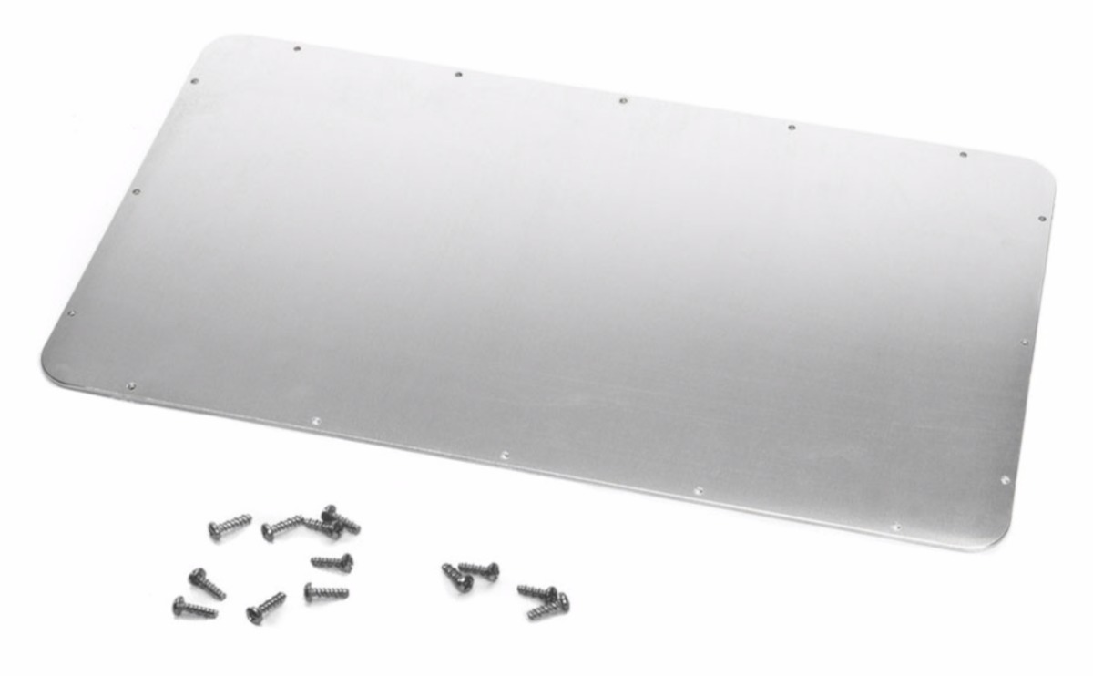 Included in our aluminum panel kit is a contoured 1/8″ thick aluminum panel with stainless steel mounting screws and an adhesive backed die-cut waterproofing gasket.