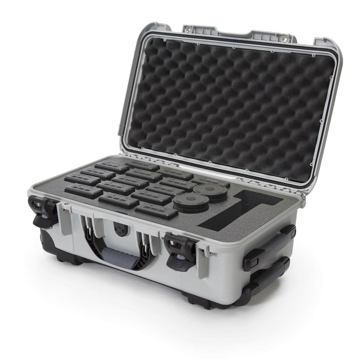 This NANUK 935 waterproof protective case is fully dedicated to organizing, protecting and carrying DJI™ Inspire 2 Drone batteries. The pre-cut foam fits up to fifteen (15) TB50 batteries, 2 charging hubs, and includes a multipurpose cavity for wires, small tools and spare parts. Equipped with a retractable handle, polyurethane wheels and a waterproof and indestructible resin shell, this protective case is easy to transport and will protective your gear against anything nature throws its way.