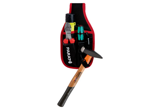 The PARABELT S Belt Pouch by PARAT accommodates roughly seven tools. It can be simply attached to your belt with the help of a large loop. The PARABELT S securely keeps tools such as screwdrivers, smaller pliers, folding rules a.s.o. close to your body and are always within easy reach. A large patch pocket offers plenty of space to store screws or nails. Insulation tape or hammer can be easily fixed to a separate loop with a snap hook. The PARABELT S is made from robust nylon material and wows customers with its appealing design in subtle black with red PARAT styleline. The PARABELT belt pouch is available in size S, M and L.