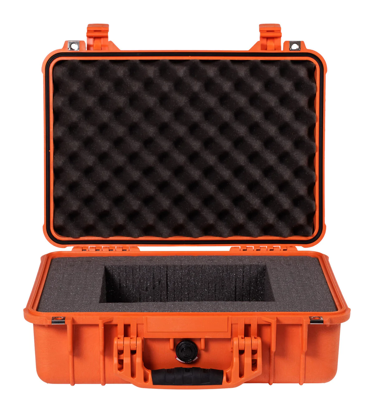 The Peli 1500 is very popular within the Medium Sized Case Range. The included Peli Foam consists of Corrugated Lid Foam , 1 x thin layer as the bottom base foam and then one large Pick and Pluck foam set filling the rest of the Case. With Pick and Pluck foam you can easily cut it with a knife or just pull the pre scored cubes out by hand.