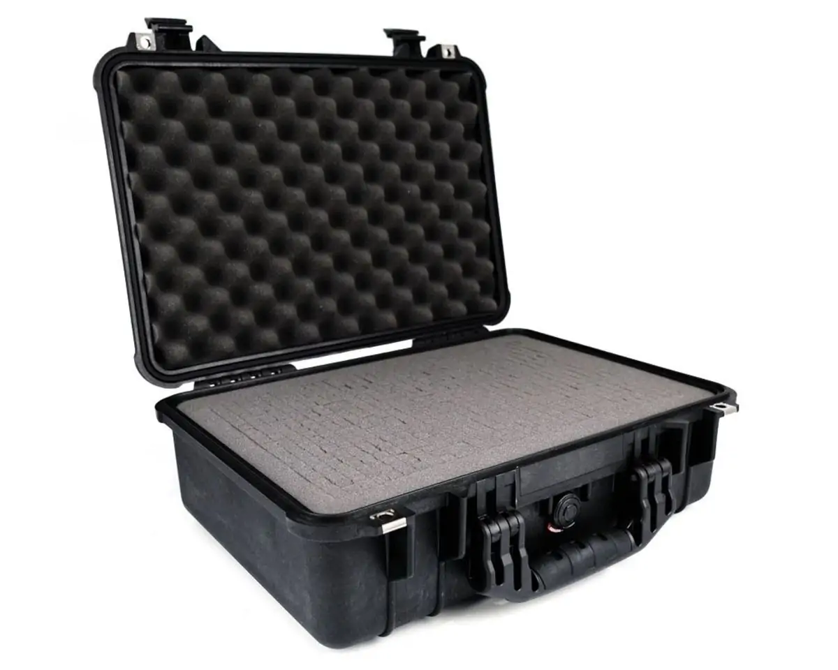 The Peli 1500 is very popular within the Medium Sized Case Range. This case can be empty or for superb protection you can use the Peli Foam set . This Peli Foam consists of Corrugated Lid Foam , 1 x thin layer as the bottom base foam and then one large Pick and Pluck foam set filling the rest of the Case. With Pick and Pluck foam you can easily cut it with a knife or just pull the pre scored cubes out by hand.