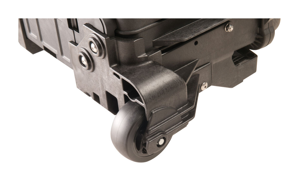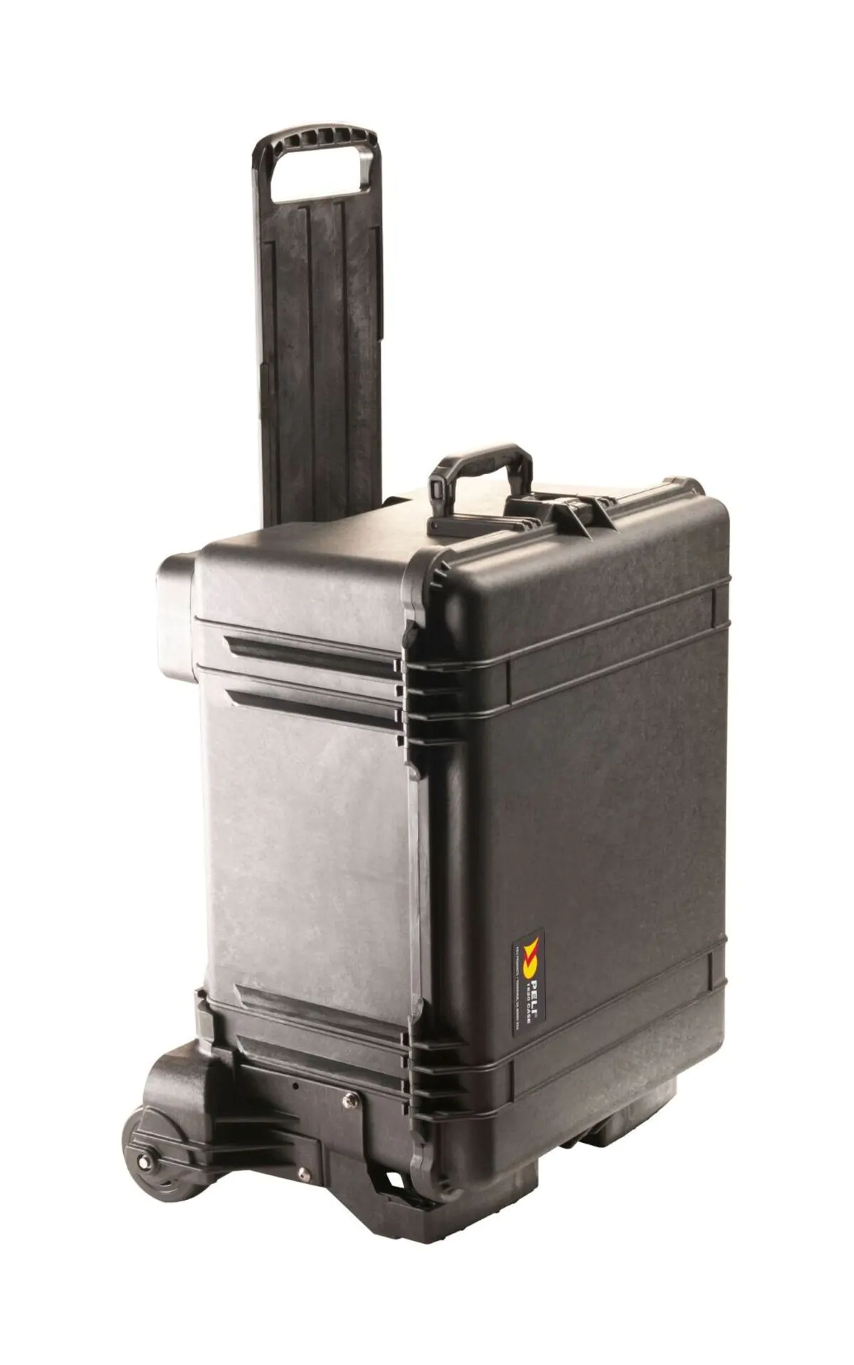 It is made of Ultra High Impact structural copolymer that makes it strong and durable. It features an exclusive 6.4mm neoprene o-ring and ABS latches to seal perfectly. It also includes an automatic purge valve for quick equalisation after changes in atmospheric pressure (essential for air travel). This Peli 1620M is equipped with 4" diameter x 1.5" wide (10.2 x 3.8cm) heavy duty polyurethane wheels with stainless steel bearings (up from 2inch/5cm hard rubber transport wheels on the standard 1620). It also features a retractable extension handle and multiple fold down carrying handles.