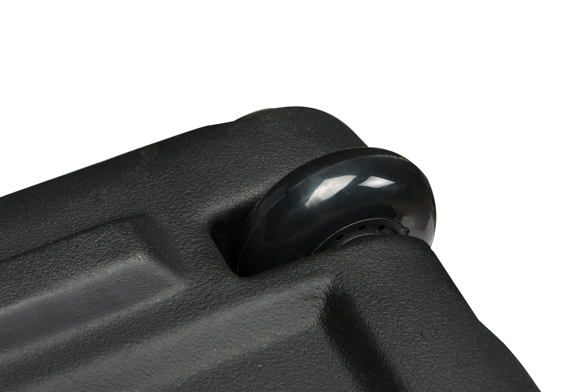 • Molded in rear edge casters with handles on the lid for ease of movement