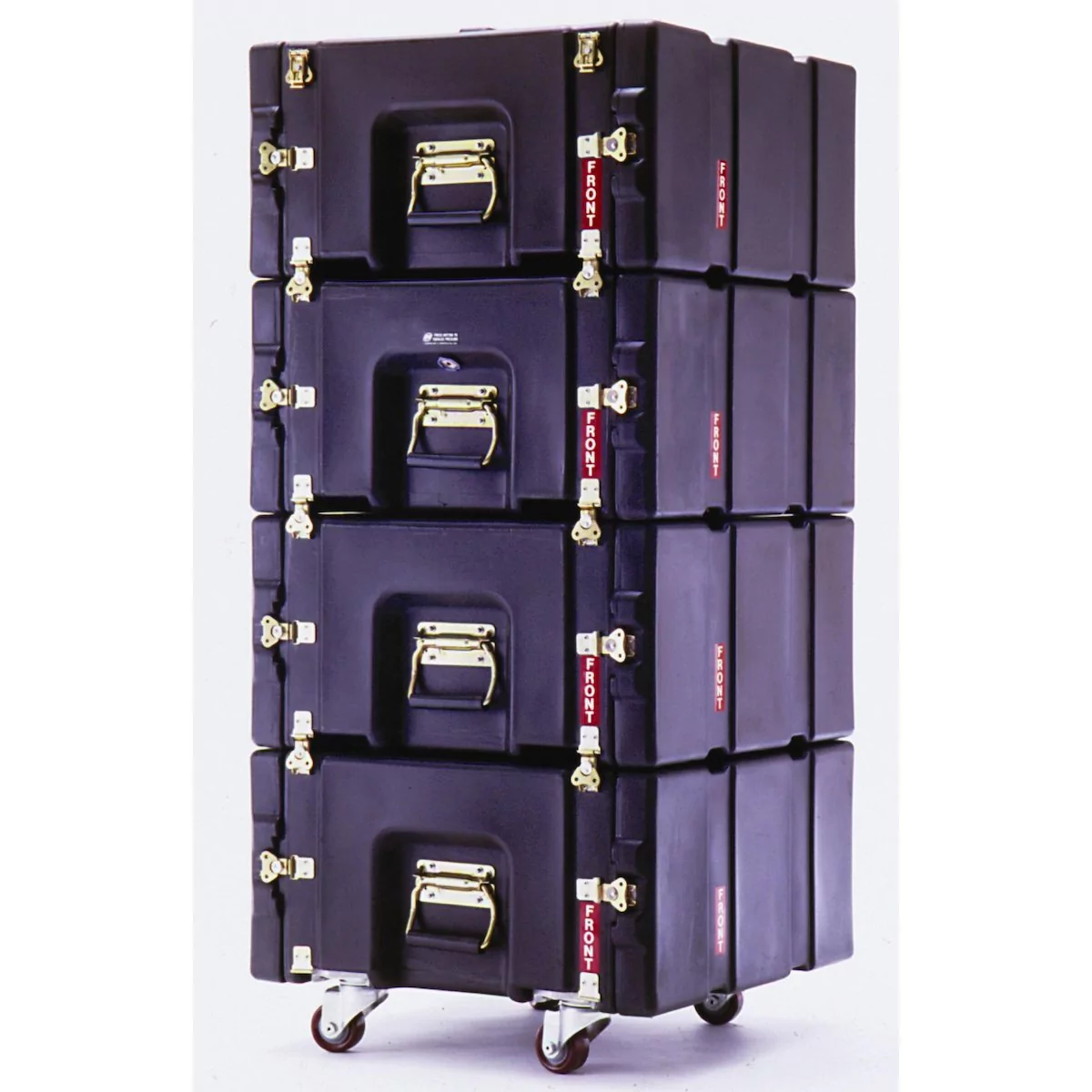 Rotationally molded ProRack rack mount cases are lightweight, space-efficient and open from both the front and back for rapid, easy access. Although they are not shock mounted or cushioned, these rugged 18” deep rackmounts are engineered with aircraft aluminum frame suspended on plastic fins to protect your gear from direct impact. Peli Hardigg’s ProRack rackmount systems are designed for equipment up to 75 lbs., with a fragility from 80-120 G’s, including field-deployed amplifiers and electronic, medical or testing equipment components.