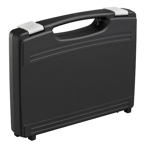 The case presents itself with smooth lines, a resistent polypropylene body and a reliable handle integrated in the outline of the case .It's caracterized by a wide range of possibilities of internal customization (with custom cut foam) as well as external (with screen prints and customized labels). Clips are available in different colors upon request. Material: polypropylene.