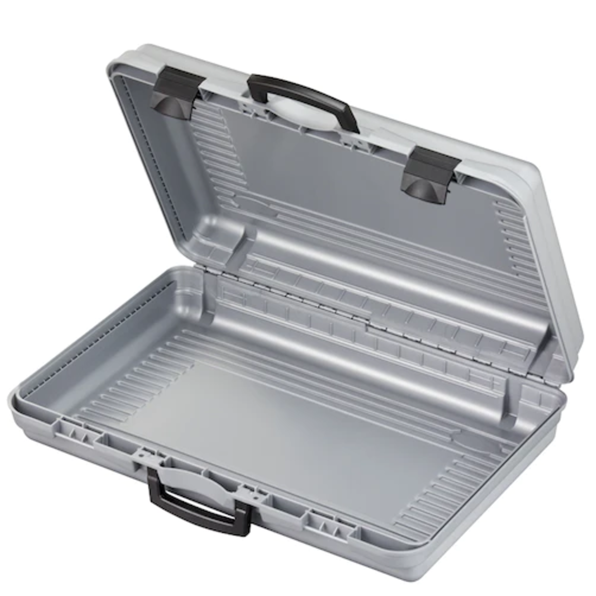 Plastic packaging Case 170/60H144 from the Procase series with internal dimensions of 575 x 355 x 132 mm / 22.64 x 13.98 x 5.20 inch. Available in grey color with black clips.