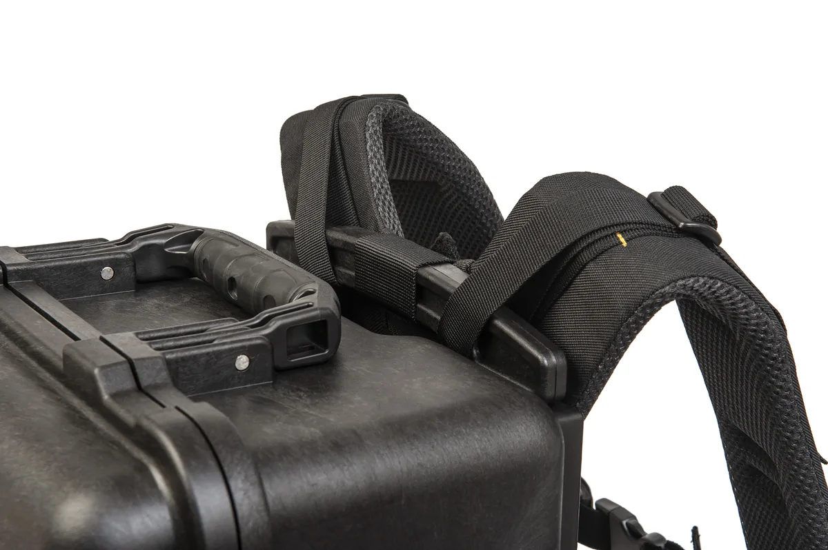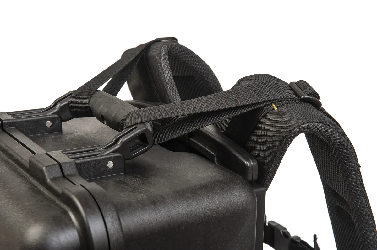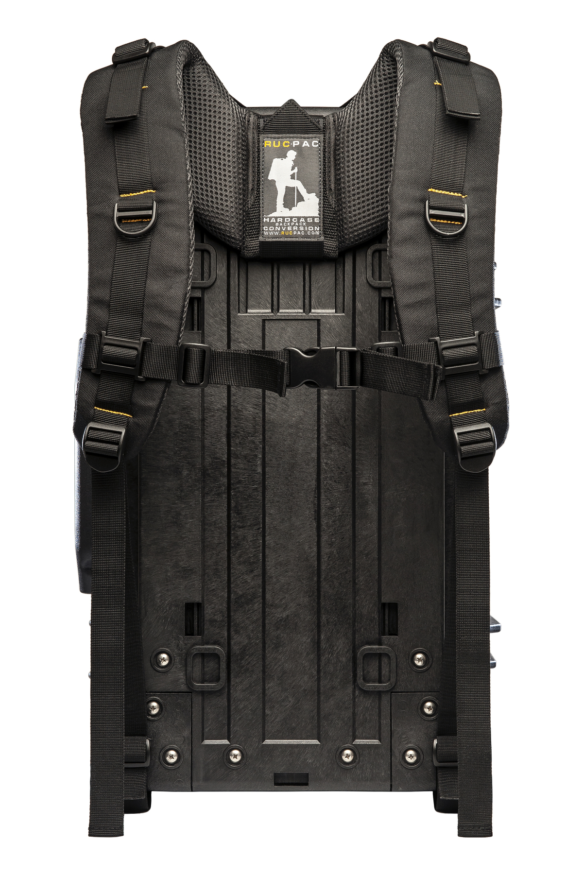 The Ruc Pac Converts a wheeled hardcase into a backpack. Generously-sized, padded shoulder area and straps, where the weight is distributed to offer comfort and durability. Still allowing immediate access into the case whilst still attached but quickly attachable/removable and can be stored inside the case.