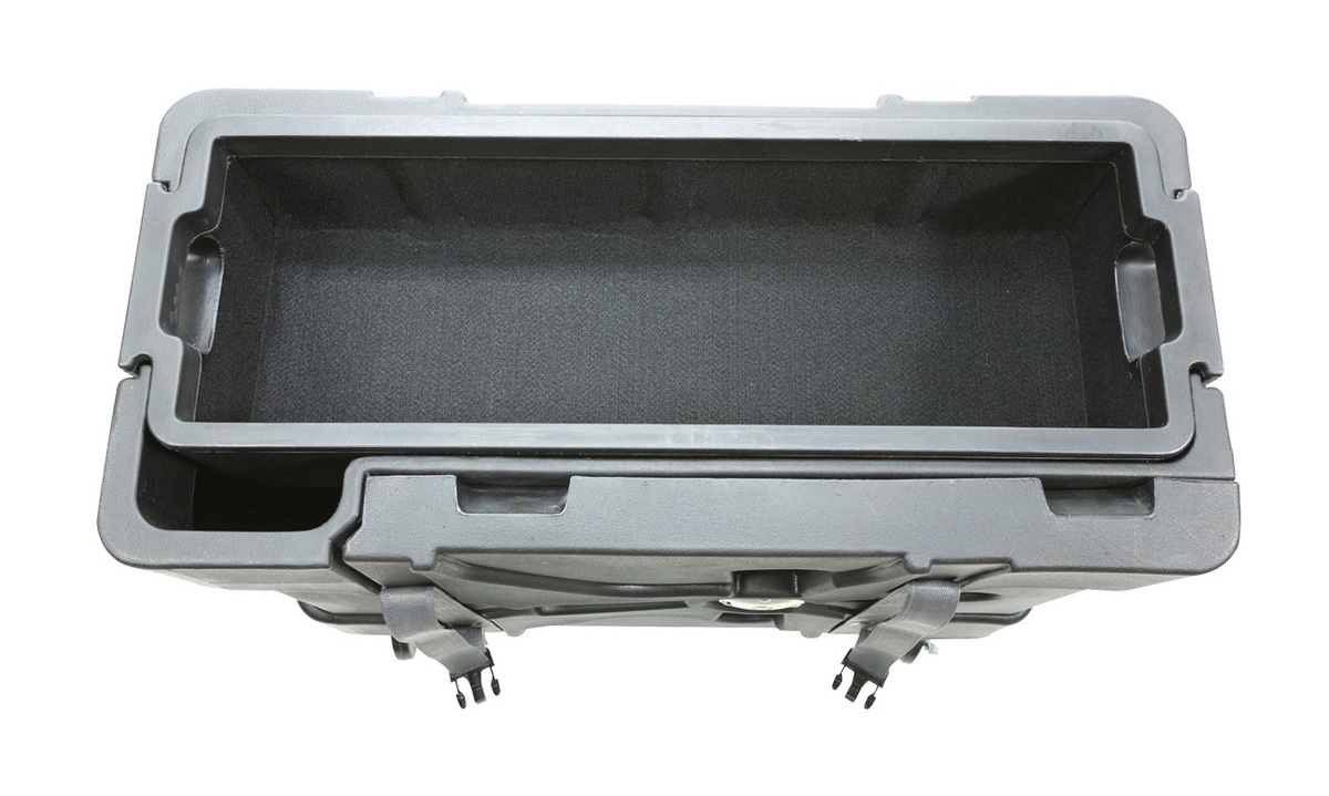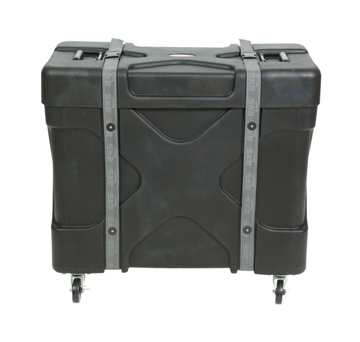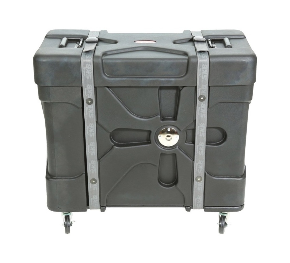 The SKB-TPX2 is a scaled down version of the SKB-TPX1 that is roto molded with the patented X pattern for strength and durability of Linear Low Density Polyethylene. This is a top loading case with a removable lid and lift off hardware tray, Sure Grip handles with a 90 degree stop are designed for easy lifting and transport, 4 casters with brakes and a sturdy, high-tension slide release buckle and heavy duty web straps.The SKB-TPX2 has a unique integrated fold-down cymbal vault with (4) pads that will hold up to (6) cymbals and carpeted storage for (1) snare drum making this the ultimate in small kit transport.