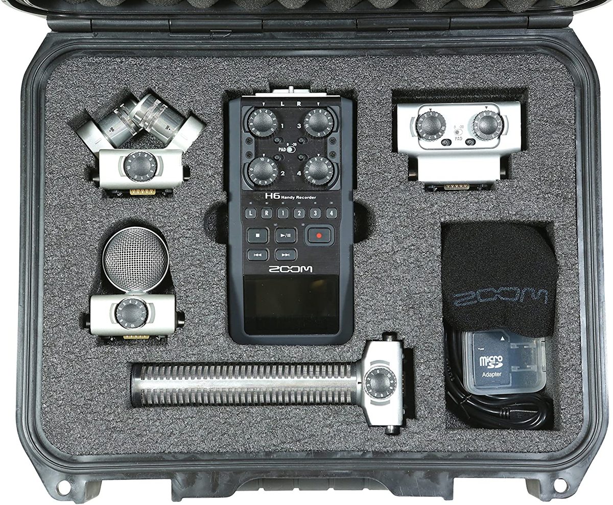 This military-standard waterproof hard case was specifically designed for the Zoom H6 recorders. The interior is custom cut high quality PE foam that includes space for the ultimate Zoom H6 recording setup. This includes pockets for the recorder, XYH-6 X/Y mic capsule, MSH-6 MS mic capsule, SGH-6 Shotgun mic capsule, EXH-6 Dual XLR/TRS Combo capsule, windscreen, memory cards, cables, and additional accessories. Not only does the SKB Zoom H6B case provide the ultimate protection for the recorder, it is backed by SKB's unsurpassed Lifetime Warranty. About our iSeries