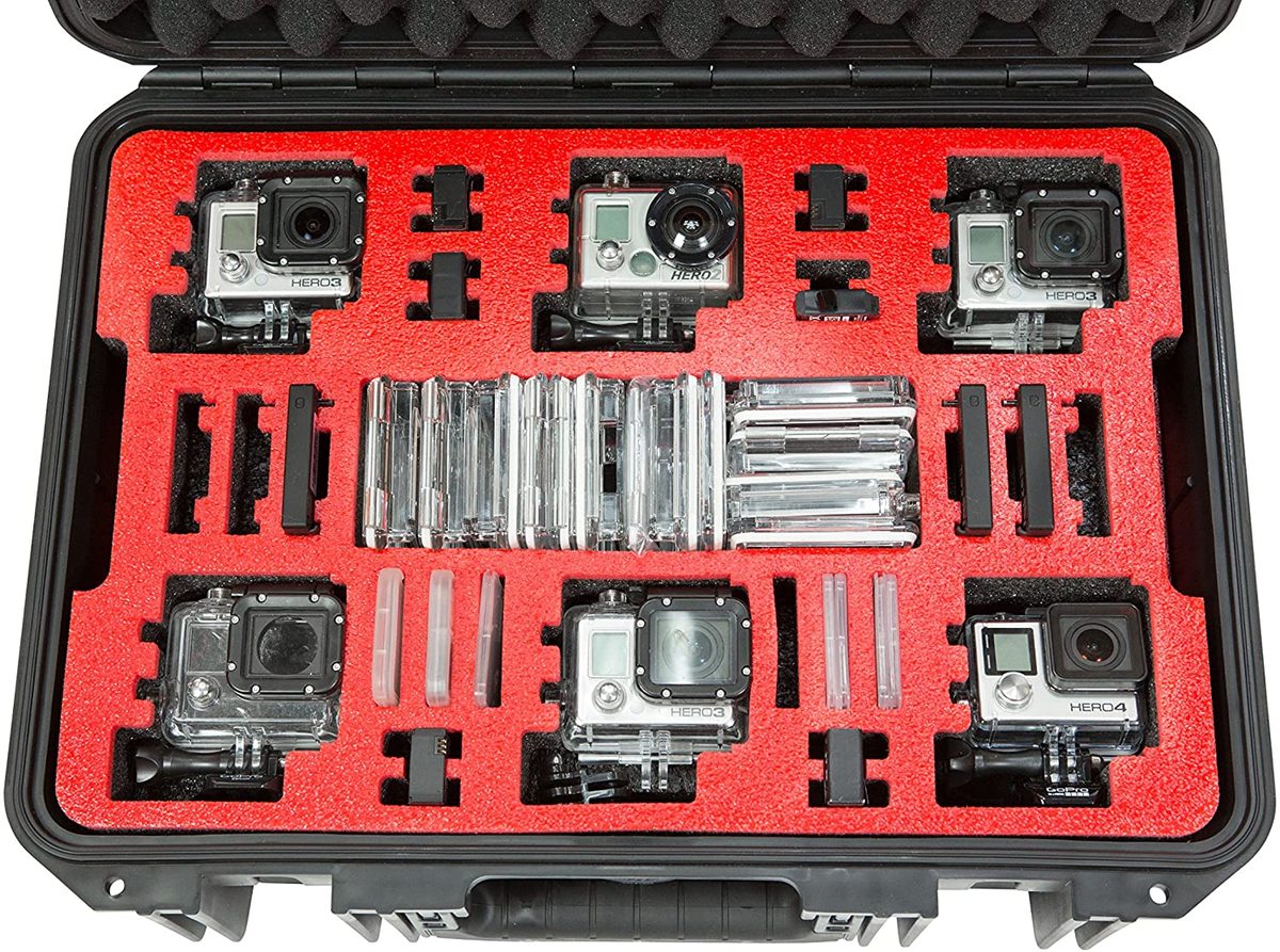 Dual layer custom foam interior to hold six GoPro cameras Ultra high-strength polypropylene copolymer resin UV, solvent, corrosion and fungus resistant (MIL-STD-810F) Complete gasket seal makes these cases absolutely watertight (MIL-STD-C-4150J) Automatic ambient pressure equalization value (MIL-STD-648C & IP67) Resistant to corrosion and impact damage Molded-in hinges Patented mini trigger release latch system Rubber over-molded cushion grip handle Locking loops for customer supplied lock