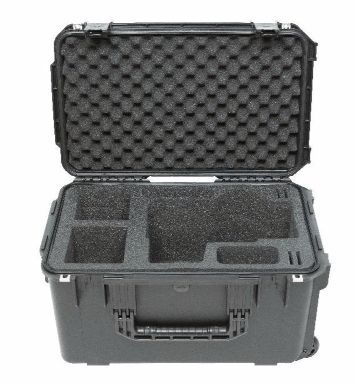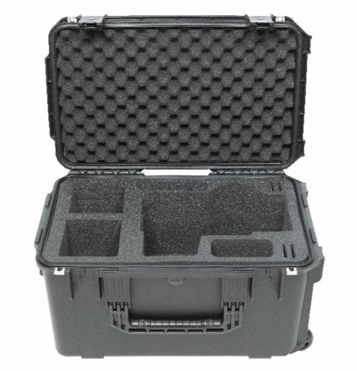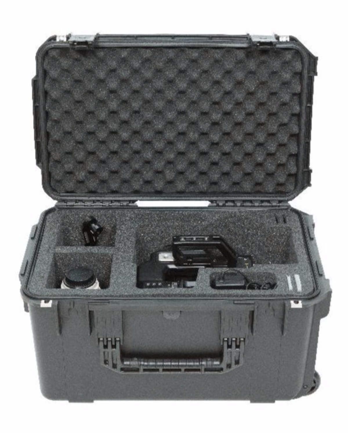 The iSeries 3i-221312BKU was designed to fit the Blackmagic URSA Mini camera and accessories, and features a high quality PE form-cut foam interior with removable foam blocks to accommodate any setting of the camera shoulder mount. Additional pockets provide room for four (4) CFast cards, a pair of 8" and 12" rods, and power supply, as well additional batteries, lenses, or other accessories. The wall joining these accessory compartments can also be removed to make one large cavity for larger equipment.All SKB iSeries Injection Molded Mil-Standard Waterproof Cases are molded of ultra high-strength polypropylene copolymer resin, and feature a water- and dust- tight, submersible design (MIL-C-4150J) that is resistant to corrosion and impact damage (MIL-STD-810G). Other standard features include a molded-in hinge, patented “trigger release” TSA-retrofittable latches, comfortable snap-down rubber over-molded cushion grip handles, automatic ambient pressure equalization valve (MIL-STD-648C), and resistance to UV, solvents, corrosion, and fungus.