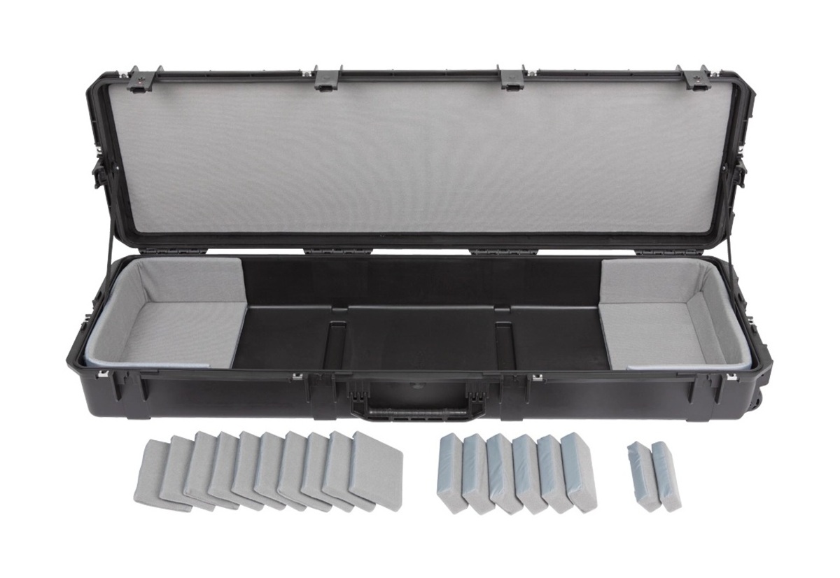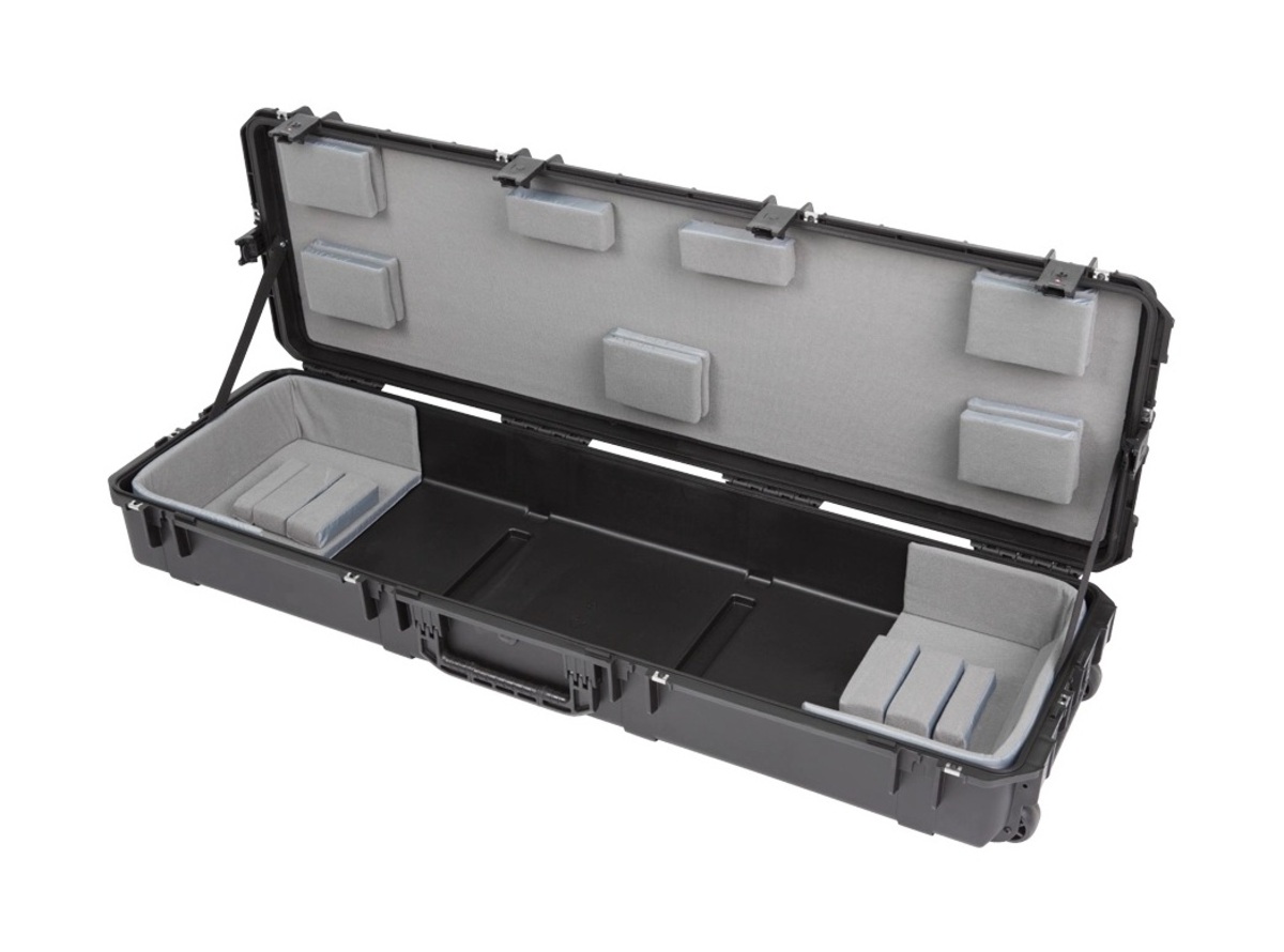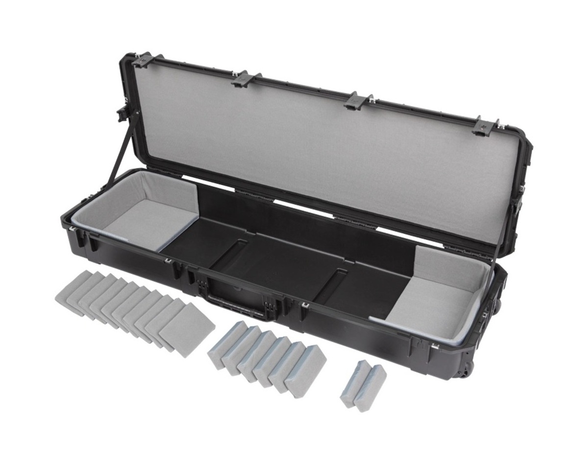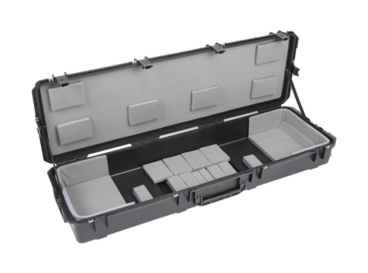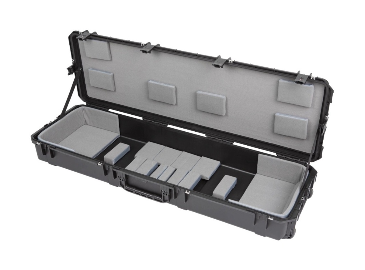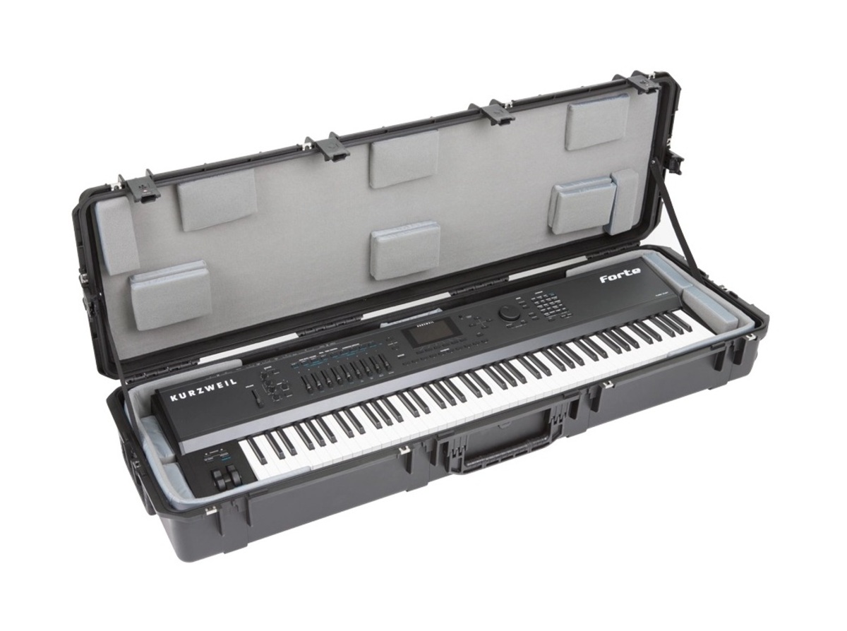 The new 3i-6018-TKBD iSeries 88-note Keyboard Case is waterproof, military-grade, and features an all-new Think Tank-designed interior that's fully customizable with repositionable Velex-covered foam pads to ensure a perfect fit even if your gear changes. The 3i-6018-TKBD is now the largest injection moulded keyboard case we make, and can accommodate such models as the Korg Kronos and Krome 88, Kurzweil PC3K8 and Forte 88, and Roland RD-2000. Interior dimensions: 144.78x43.18x15.24cm (57" x 17" x 6") All SKB iSeries Waterproof Cases are injection molded of ultra high-strength polypropylene copolymer resin, and feature a gasket sealed, water and dust-tight submersible design (MIL-C-4150J). This case features a molded-in hinge, patented trigger release latch system, comfortable, snap-down rubber over-molded cushion grip handle and an automatic ambient pressure equalization valve (MIL-STD-648C). Our iSeries line is resistant to UV, solvents, corrosion, fungus and impact damage (MIL-STD-810F).