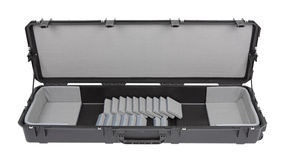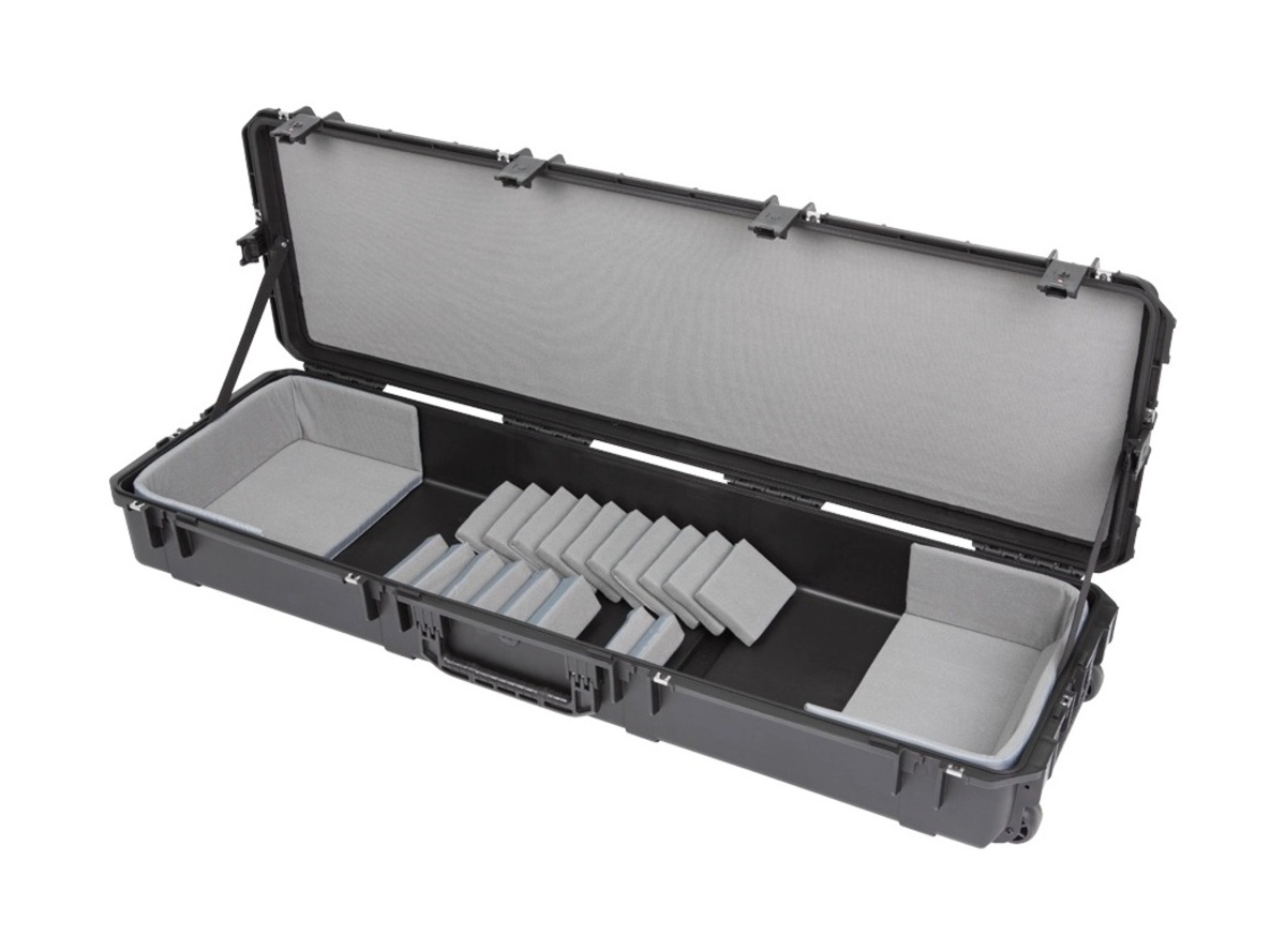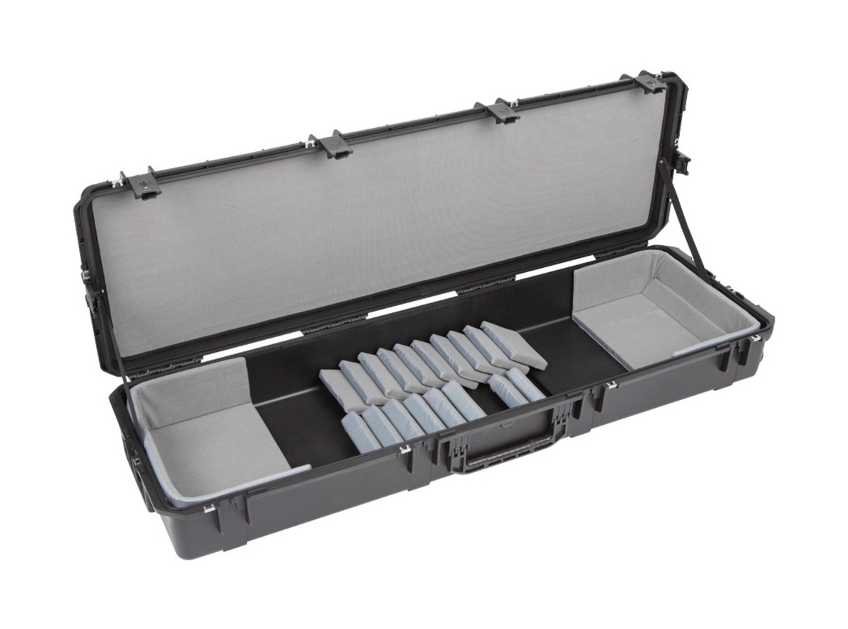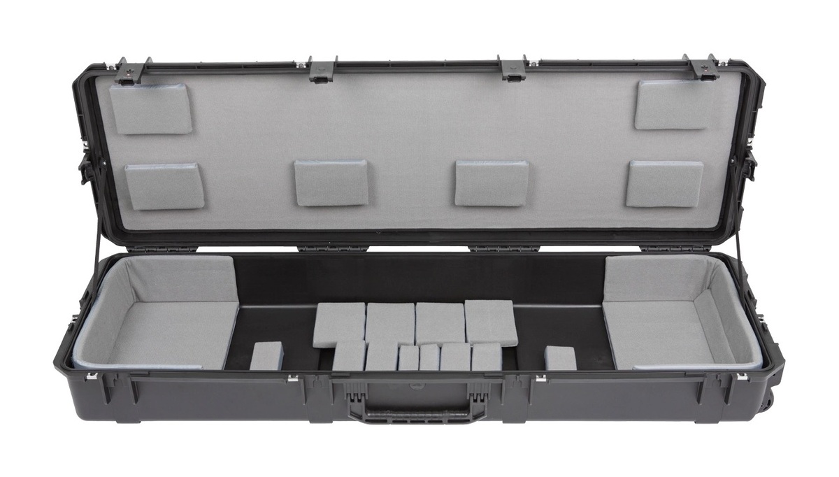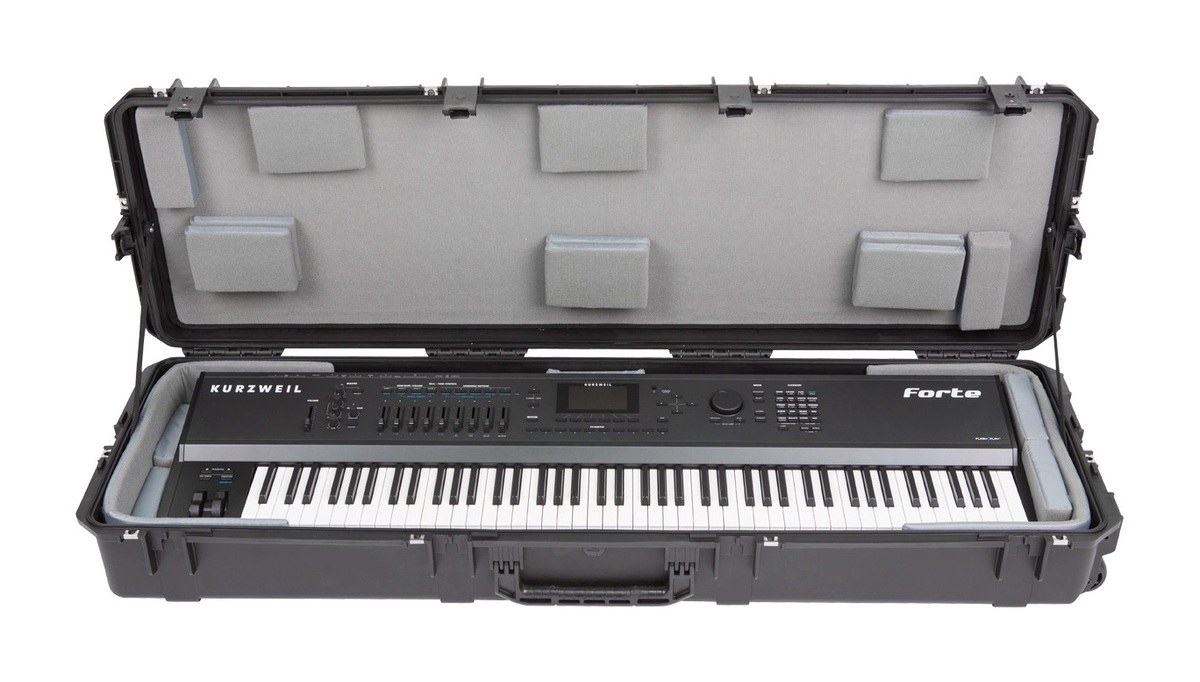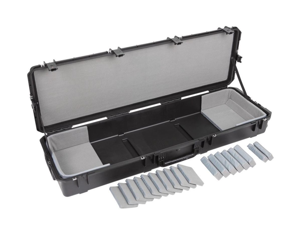 The new 3i-6018-TKBD iSeries 88-note Keyboard Case is waterproof, military-grade, and features an all-new Think Tank-designed interior that's fully customizable with repositionable Velex-covered foam pads to ensure a perfect fit even if your gear changes. The 3i-6018-TKBD is now the largest injection moulded keyboard case we make, and can accommodate such models as the Korg Kronos and Krome 88, Kurzweil PC3K8 and Forte 88, and Roland RD-2000. Interior dimensions: 144.78x43.18x15.24cm (57" x 17" x 6") All SKB iSeries Waterproof Cases are injection molded of ultra high-strength polypropylene copolymer resin, and feature a gasket sealed, water and dust-tight submersible design (MIL-C-4150J). This case features a molded-in hinge, patented trigger release latch system, comfortable, snap-down rubber over-molded cushion grip handle and an automatic ambient pressure equalization valve (MIL-STD-648C). Our iSeries line is resistant to UV, solvents, corrosion, fungus and impact damage (MIL-STD-810F).
