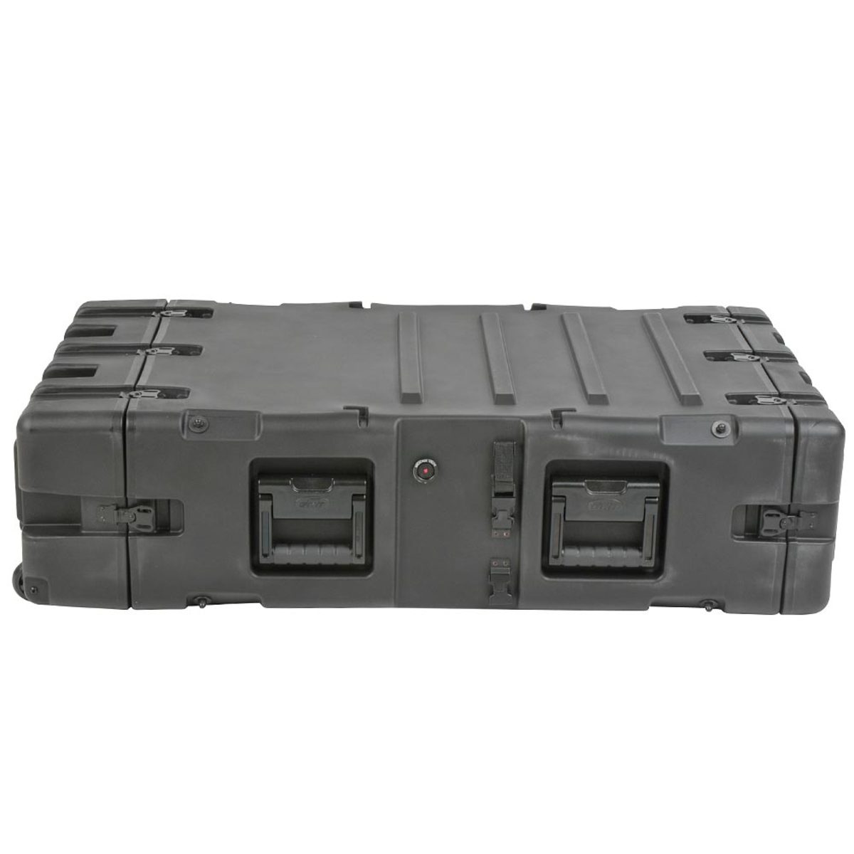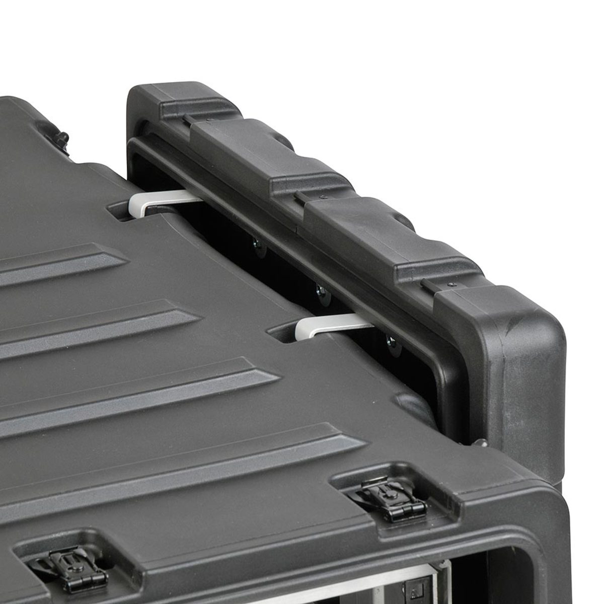 The rugged roto-moulded shell ensures industry leading strength and impact resistance. The standard COTS (commercial off the shelf) case comes with a 2” deep front lid and a 5” deep rear lid to accommodate rack gear that is longer than 30”, and edge casters to allow convenient case transport. Moulded-in stacking ribs and lugs are designed to stack with competitive manufacturers cases. Black powder coated stainless steel hardware are recessed for protection is standard as well as 8 comfort grip spring loaded lift handles which allow for easy movement. An automatic pressure relief valve is another standard feature along with gasket sealed lids that include convenient lid hangers to store your lids when your equipment is in operation. Coupling straps are included for securing the racks together when stacked.
