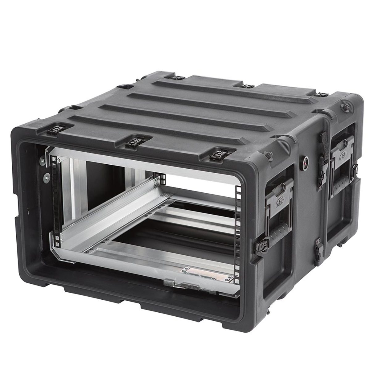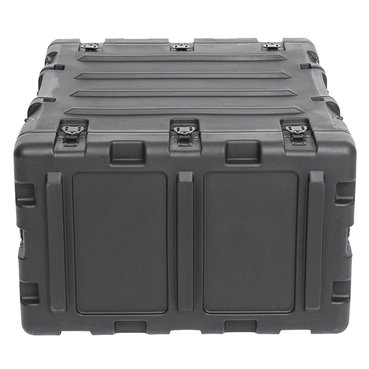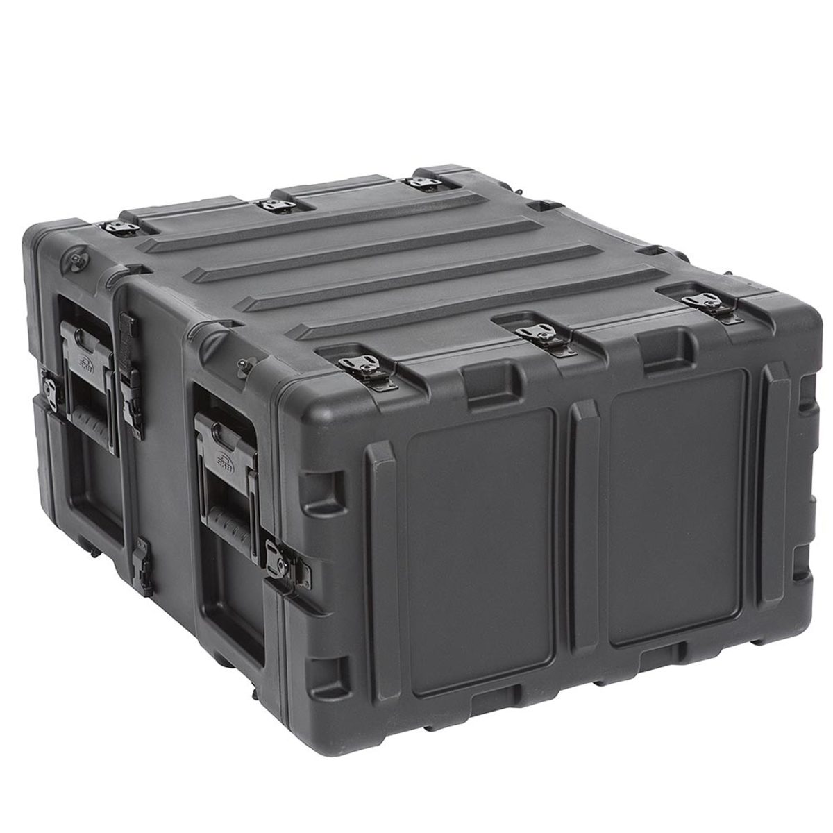 The rugged roto-moulded shell ensures industry leading strength and impact resistance. The standard commercial off the shelf (COTS) case comes with 2″ deep front and rear lids to accommodate rack gear that is longer than 20″. Moulded-in stacking ribs and lugs are designed to stack with all SKB 3RR and 3RS cases, as well as competitive manufacturer cases, and feature black powder coated stainless steel hardware that is recessed for protection and 4 comfort grip spring loaded lift handles which allow for easy movement. An automatic pressure relief valve is another standard feature along with gasket sealed lids that include convenient lid hangers to store your lids when your equipment is in operation. Coupling straps are included for securing the racks together when stacked.