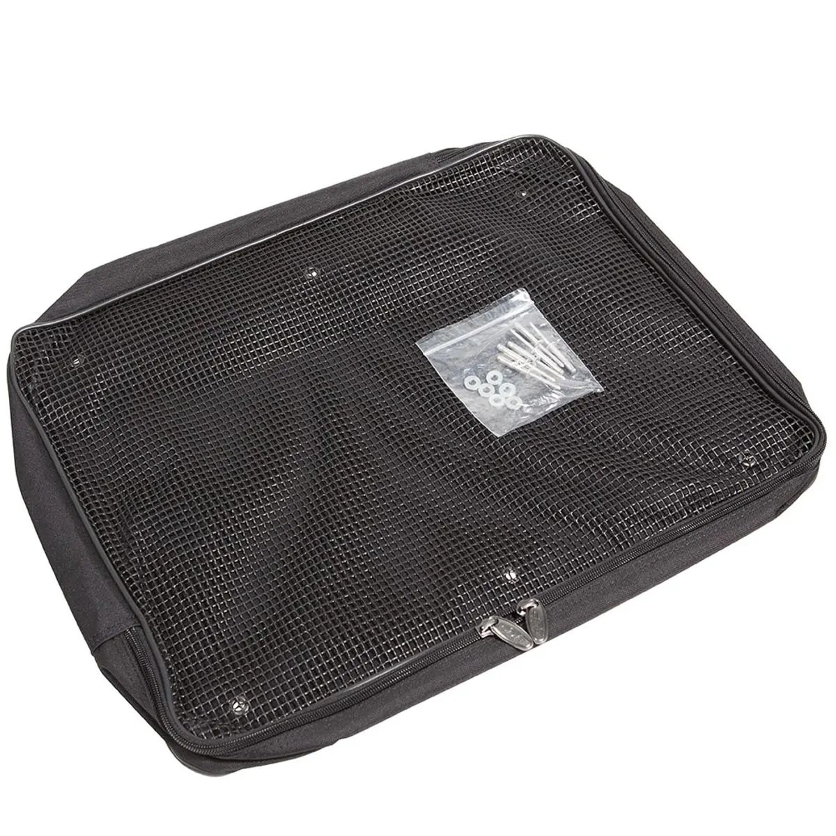 Accessory pocket that measures 20″ x 15″ x 3″ (51cm x 39cm x 7.5cm) with hardware to attach to the inside of SKB Shockrack lids.
