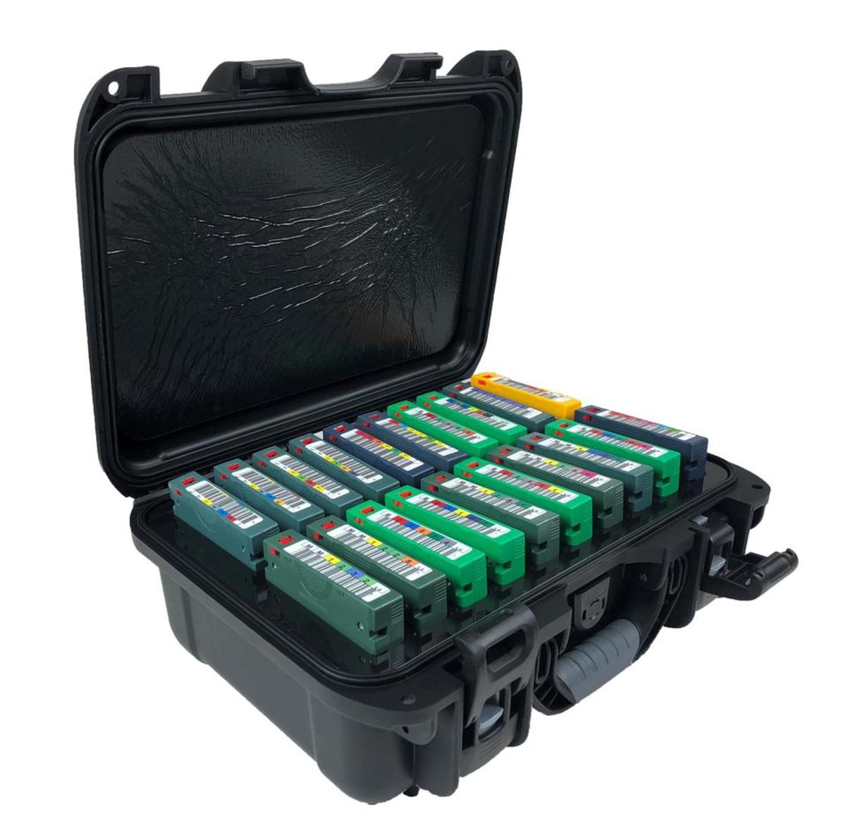 This heavy duty, waterproof 20 capacity case stores LTO tapes without their plastic jewel boxes and provides protection against the key problems that cause data loss: