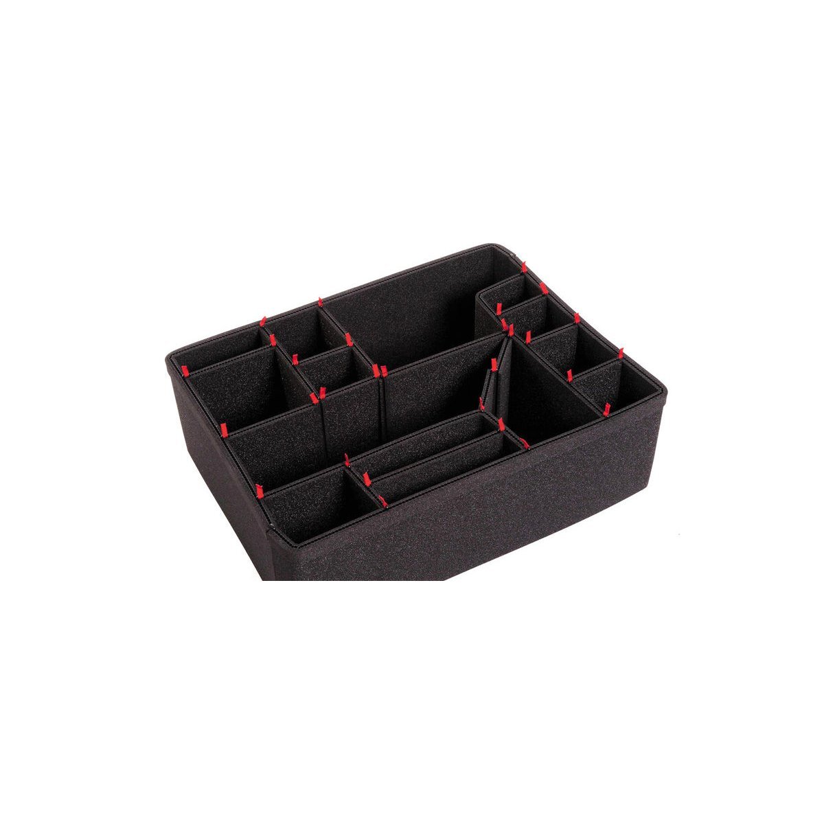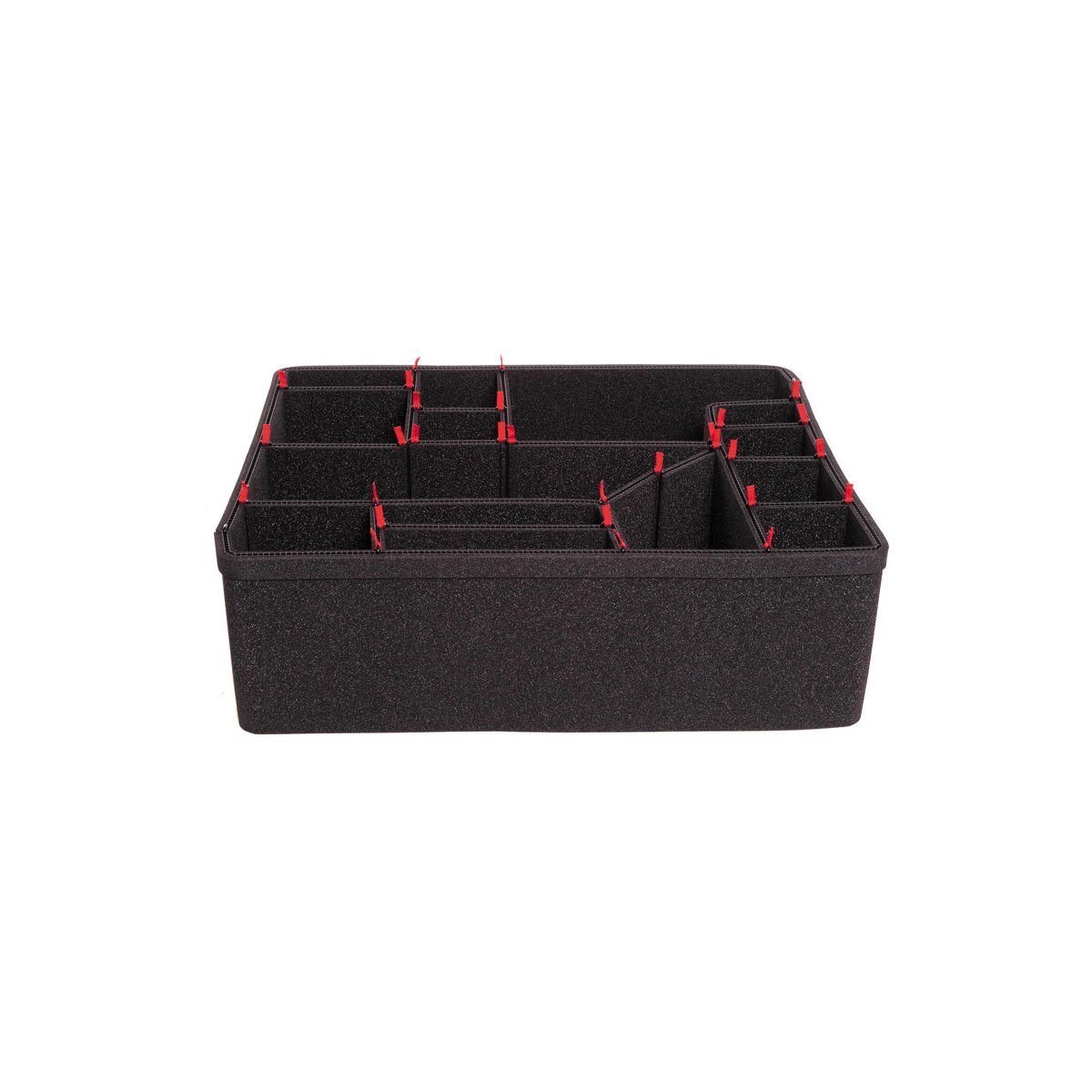 This TrekPak insert for the Peli 1550 Protector Case will contain two perimeter pieces, two 38.1cm dividers, two 45.72cm dividers, one cutter tool, 20 pins with 20 red pull tabs, lid and base foam.