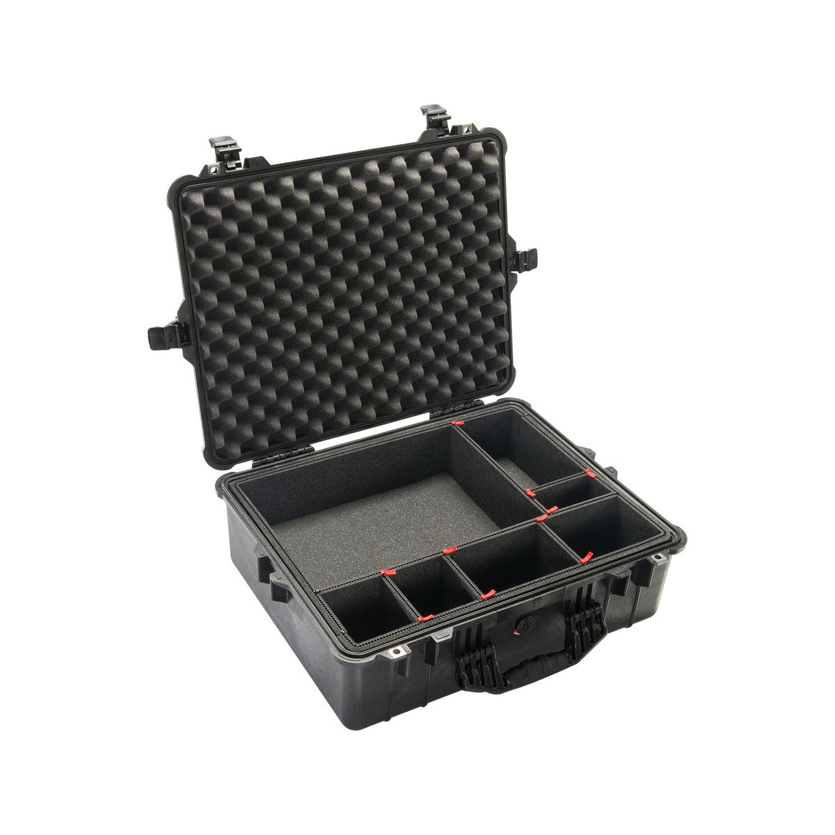 This TrekPak insert for the Peli 1560 Protector Case will contain two perimeter pieces, two 30.4cm dividers, two 53.4cm dividers, one cutter tool, 30 pins with 30 red pull tabs, lid and base foam.
