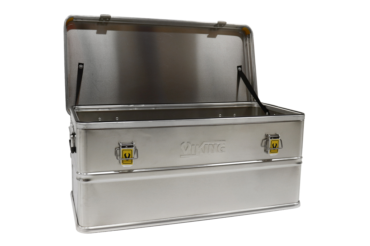 Aluminum boxes have unique advantages: they are lightweight, impact proof, robust and built to last, ensuring your content is completely protected. Also, aluminum is unaffected by extreme cold or heat, is antimagnetic and rustproof. The Viking Box is equipped with comfortable handles, easily stackable, perfectly stabile because of the typical yellow sturdy angle profiles and closable withe and yellow patted locks.