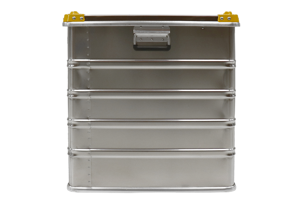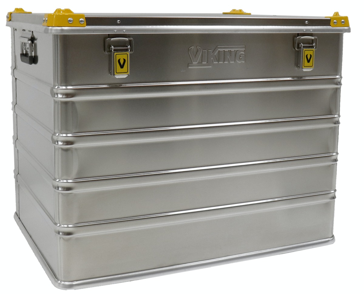 Aluminum boxes have unique advantages: they are lightweight, impact proof, robust and built to last, ensuring your content is completely protected. Also, aluminum is unaffected by extreme cold or heat, is antimagnetic and rustproof. The Viking Box is equipped with comfortable handles, easily stackable, perfectly stabile because of the typical yellow sturdy angle profiles and closable withe and yellow patted locks.