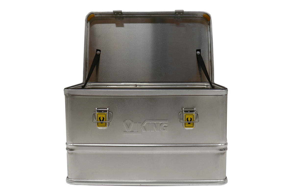 Aluminum boxes have unique advantages: they are lightweight, impact proof, robust and built to last, ensuring your content is completely protected. Also, aluminum is unaffected by extreme cold or heat, is antimagnetic and rustproof. The Viking Box is equipped with comfortable handles, easily stackable, perfectly stabile because of the typical yellow sturdy angle profiles and closable withe and yellow patted locks.